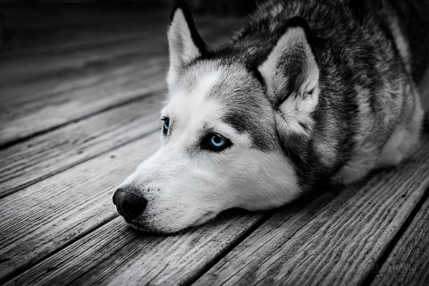 Blue Eyes   This is our 7 year old Siberian Husky. Her blue eyes always called for a black and white photo. When I got my Sigma 17-50 f2.8 EX lens, I finally got this image.