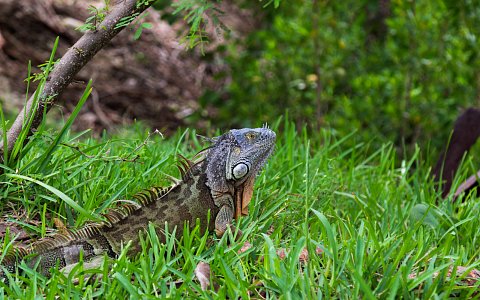 Iguana in the grass   An iguana sunning itself in the grass at Fort Zachary Taylor in Key West, Florida.